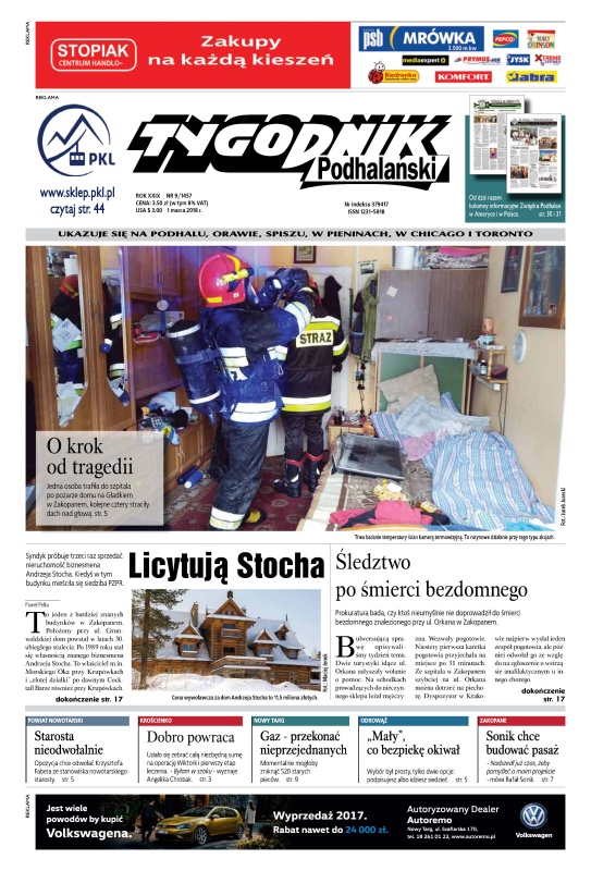 O krok od tragedii – jedna osoba trafiła do szpitala po pożarze domu na Gładkiem w Zakopanem, kolejne cztery straciły dach nad głową; licytują Stocha – syndyk próbuje trzeci raz sprzedać nieruchomość biznesmena Andrzeja Stocha. Kiedyś w tym budynku mieściła się siedziba PZPR; śledztwo po śmierci bezdomnego – prokuratura bada, czy ktoś nieumyślnie nie doprowadził do śmierci bezdomnego znalezionego przy ul. Orkana w Zakopanem; starosta nieodwołalnie – opozycja chce odwołać Krzysztofa Fabera ze stanowiska nowotarskiego starosty; gaz - przekonać nieprzejednanych.