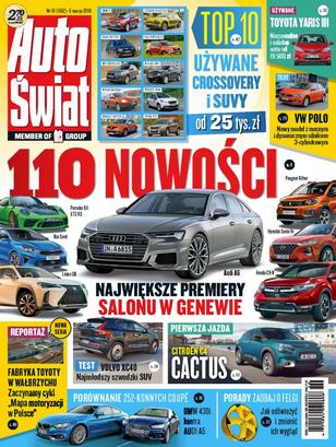 AKTUALNOŚCI: premiery salonu genewskiego; Audi A6; Citroen C4 Cactus; Opel Insignia GSi; TESTY: Audi A5 kontra BMW serii 4; Volkswagen Polo; Volvo XC40; Mercedes E 220d; PORADY: retrofity LED; zaliczka i zadatek – czym się różnią; drugie życie alufelgi; smartfon w samochodzie – przydatne akcesoria i aplikacje; Z DRUGIEJ RĘKI: Toyota Yaris III (od 2011 r.); top 10 – crossover dla każdego; FASCYNACJE: Toyota w Wałbrzychu.