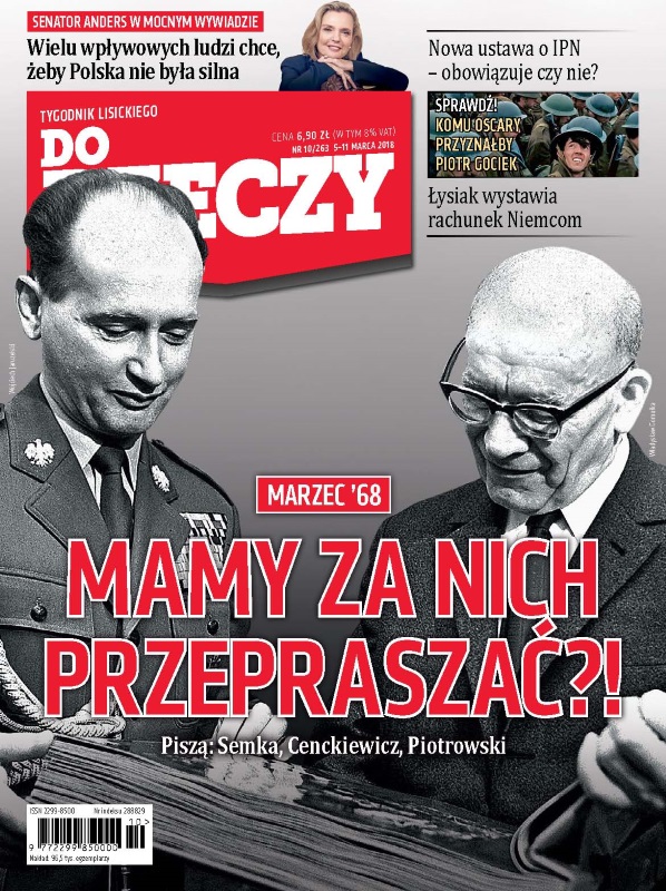 Mitologia Marca 1968; dlaczego korygowanie kłamstw historycznych to polska racja stanu; najlepsze filmy 2017; Łysiak vs Germania; najtragiczniejszy wypadek w polskich górach; konflikty zbrojne po nowemu; czy powstanie polski gigant paliwowy; e-recepta - rusza pilotaż oczekiwanych zmian; żołnierz, który nie ustał w szeregu.