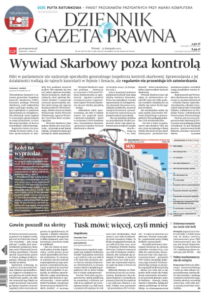 Nikt w parlamencie nie nadzoruje specsłużby generalnego inspektora kontroli skarbowej – sprawozdania z jej działalności trafiają do tajnych kancelarii w Sejmie i Senacie, ale regulamin nie przewiduje ich zatwierdzania; ponad 3,2 mld zł mają sięgnąć wpływy ze sprzedaży 13 spółek kolejowych; w którym momencie powstaje prawo; w kluczowym tygodniu negocjacji nad unijnym budżetem Donald Tusk głośno mówi już o 400 mld zł, a nie 300 mld zł z UE; zagraniczne banki wycofały z Polski przez rok, do końca czerwca, równowartość 4 proc. PKB; dlaczego wybranie dłuższego macierzyńskiego i zaraz po nim urlopu wypoczynkowego uniemożliwi skorzystanie z pełnego wymiaru wychowawczego.