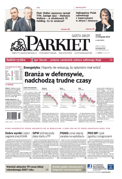 Pogarsza się sytuacja w krajowej energetyce – popyt na prąd słabnie, w ślad za nim spadają ceny; KGHM International mocno poprawił wyniki finansowe; PGNiG będzie więcej zarabiać na wydobyciu; Piotr Walter zastąpił ojca w strukturach ITI; najbogatszy Polak razem z firmami z Kataru, Brazylii i USA powołał spółkę, która będzie realizować projekty w Afryce i Ameryce Południowej; Sieczin – pan życia i śmierci w rosyjskiej energetyce; PKO BP jest gotowy na gorsze czasy; dane o wymianie handlowej pokazują skalę spowolnienia – ekonomiści prognozują wzrost PKB w III kw. na 1,7 proc.