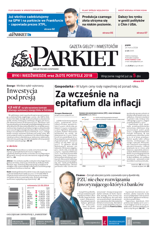 Największy w Polsce newsroom gospodarczy zbiera, analizuje i zgłębia dla Państwa najważniejsze informacje ze świata finansów. Codzienne wydanie „Parkietu”, sześć dni w tygodniu, to kilkadziesiąt artykułów o emitentach, instytucjach finansowych, gospodarce. To również opinie, felietony i wywiady z najważniejszymi ludźmi krajowej i globalnej finansjery.