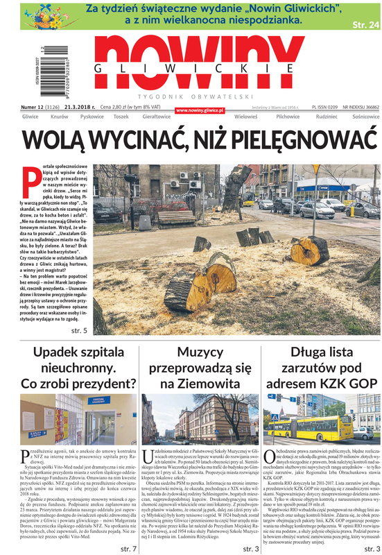 „Nowiny Gliwickie” ukazują się już od 1956 r. Tygodnik obywatelski, który zasięgiem obejmuje Gliwice i powiat gliwicki. Na swoich łamach prezentujemy szeroko pojętą tematykę polityczną, gospodarczą, społeczną, obyczajową, kulturalną, a także sport, ciekawe reportaże i wywiady. Na bieżąco informujemy, co w powiecie piszczy. Jesteśmy organizatorem licznych imprez, takich jak plebiscyt Człowiek Ziemi Gliwickiej czy wybory Miss „Nowin Gliwickich”. Inicjujemy również działalność charytatywną. Opiekujemy się dziećmi ze świetlicy PCK, co roku zapraszamy na wigilię bezdomnych i samotnych. W gazecie nie brakuje okolicznościowych konkursów i zabaw dla czytelników.