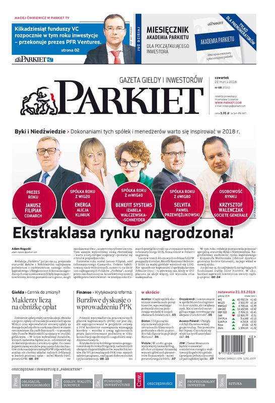 Największy w Polsce newsroom gospodarczy zbiera, analizuje i zgłębia dla Państwa najważniejsze informacje ze świata finansów. Codzienne wydanie „Parkietu”, sześć dni w tygodniu, to kilkadziesiąt artykułów o emitentach, instytucjach finansowych, gospodarce. To również opinie, felietony i wywiady z najważniejszymi ludźmi krajowej i globalnej finansjery.