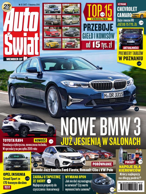 AKTUALNOŚCI: BMW serii 3; Toyota RAV4; Range Rover P400e; Poznań Motor Show 2018; TESTY: Honda Jazz, Ford Fiesta, Renault Clio i Volkswagen Polo; Toyota Land Cruiser; Peugeot 308 GTi; BMW X2; Skoda Octavia Scout; Opel Insignia Grand Sport; PORADY: wymiana kół – na co zwrócić uwagę i jak nie dać się naciągnąć; pielęgnacja skórzanej tapicerki; napoje w podróży autem – jak działają napoje energetyczne, którymi najczęściej wspomagamy się podczas jazdy; Z DRUGIEJ RĘKI: Top 15 – hity z importu; Chevrolet Camaro (2009-16); FASCYNACJE: TechnoClassica w Essen.