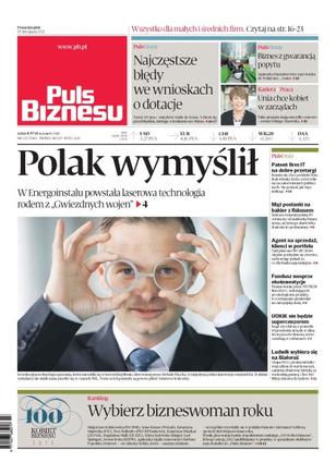 W Energoinstalu powstała laserowa technologia rodem z „Gwiezdnych wojen”; patent firm IT na dobre przetargi; mąż posłanki na bakier z fiskusem; agent na sprzedaż, klienci w portfelu; fundusz wesprze ekoinwestycje; UOKiK nie będzie supercenzorem; Ludwik wybiera się na Białoruś; najczęstsze błędy we wnioskach o dotacje; Agnieszka Kusznierewicz wprowadza do Polski sieć... toalet; Unia chce kobiet w zarządach.