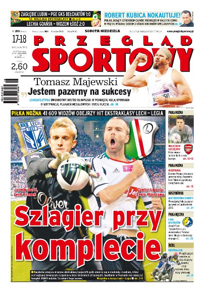Szlagier Ekstraklasy przy komplecie widzów; Tomasz Majewski opowiada o motywacji, planach medalowych i byciu ojcem; Zagłębie Lubin wygrało z PGE GKS Bełchatów, a Lechia Gdańsk pokonała Widzew Łódź; Robert Kubica wygrał siedem z ośmiu odcinków specjalnych w pierwszym dniu rajdu Rally Di Como; Wojciech Szczęsny powraca do bramki Arsenalu Londyn; z powodu kontuzji Damien Perquis nie zagra w lidze hiszpańskiej przez miesiąc; koszykarskie mistrzostwa Europy: w niedzielę Polacy poznają rywali w Eurobaskecie 2013; zespół Vive Targów Kielce gra w niedzielę z Metalurgiem Skopje o dominację w grupie C Ligi Mistrzów; w najbliższym sezonie żużlowym z najwyższej klasy rozgrywkowej spadną trzy drużyny.