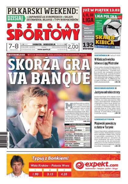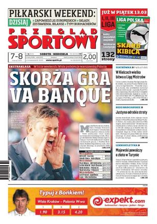 Wisła musi wygrać dziś z Polonią, inaczej straci szansę na obronę mistrzowskiego tytułu; wywiad z Tomaszem Frankowskim; Sion żądał cofnięcia certyfikatu Grosickiemu, bo ten nie zwrócił pożyczki zaciągniętej w klubie; prokurator żąda wysokich kar dla byłych działaczy Arki Gdynia; wywiad z Marcinem Robakiem, napastnikiem Widzewa; jeśli prezesi Speedway Ekstraligi zamrożą rynek transferowy, zawodnicy nie będą jeździć; główna rywalka Justyny Kowalczyk chora na grypę; Tomasz Majewski to jedyny mistrz olimpijski, który wystąpi w HME w Turynie.