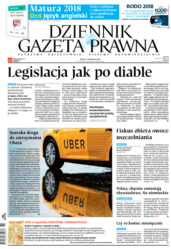 Gazetę wzbogacają praktyczne dodatki dla specjalistów, niedostępne w kioskach: Księgowość i Podatki, Rachunkowość i Audyt, Firma i Prawo, Samorząd i Administracja, Prawnik, Kadry i Płace, Ubezpieczenia i Świadczenia. NOWOŚĆ 2021 r. dodatki Biuro Rachunkowe i Księgowość Budżetowa (dostępne raz w miesiącu). Dodatkowo publikujemy wyjątkowo cenione przez Czytelników specjalne dodatki dotyczące najważniejszych zmian, nowych rozwiązań, na gorąco odpowiadamy na pytania. Piszemy o pracy zdalnej, o tarczach antykryzysowych, o nowych przepisach do walki z epidemią, o sposobach walki z zatorami płatniczymi i nowych obowiązkach pracodawców. Zapewniamy bezpieczeństwo w stosowaniu zmieniającego się prawa.