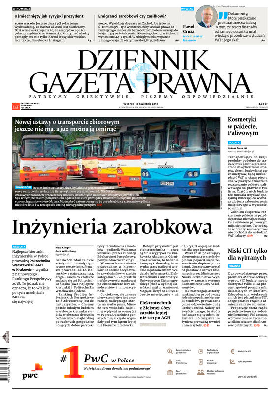 Gazetę wzbogacają praktyczne dodatki dla specjalistów, niedostępne w kioskach: Księgowość i Podatki, Rachunkowość i Audyt, Firma i Prawo, Samorząd i Administracja, Prawnik, Kadry i Płace, Ubezpieczenia i Świadczenia. NOWOŚĆ 2021 r. dodatki Biuro Rachunkowe i Księgowość Budżetowa (dostępne raz w miesiącu). Dodatkowo publikujemy wyjątkowo cenione przez Czytelników specjalne dodatki dotyczące najważniejszych zmian, nowych rozwiązań, na gorąco odpowiadamy na pytania. Piszemy o pracy zdalnej, o tarczach antykryzysowych, o nowych przepisach do walki z epidemią, o sposobach walki z zatorami płatniczymi i nowych obowiązkach pracodawców. Zapewniamy bezpieczeństwo w stosowaniu zmieniającego się prawa.