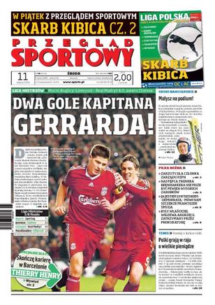 FC Liverpool rozgromił Real Madryt 4:0 i awansował do kolejnej fazy Ligi Mistrzów; dziś Manchester United zmierzy się z Interem, która z drużyn okaże się lepsza; Franciszek Smuda, trener Lecha Poznań opowiada o swoim sposobie na gwiazdy; były właściciel Widzewa Łódź zatrzymany w sprawie afery gospodarczej PZPN; po dwuletniej przerwie Adam Małysz stanął w końcu na podium w konkursie PŚ; napięta atmosfera w zespołach Formuły 1 przed początkiem nowego sezonu.