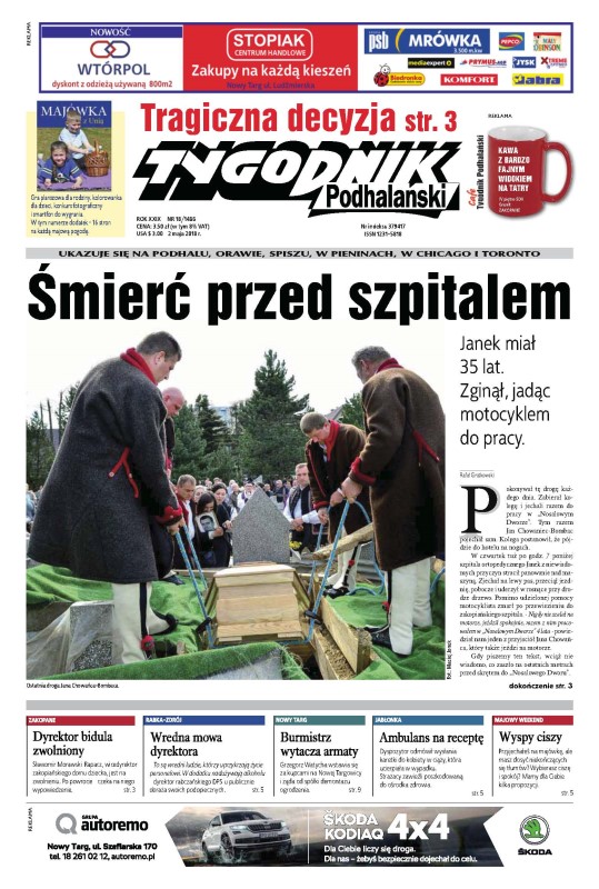 Śmierć przed szpitalem – Janek miał 35 lat. Zginął, jadąc motocyklem do pracy; Dyrektor bidula zwolniony – Sławomir Morawski-Rapacz, wicedyrektor zakopiańskiego domu dziecka, jest na zwolnieniu. Po powrocie - czeka na niego wypowiedzenie; Wredna mowa dyrektora – To są wredni ludzie, którzy uprzykrzają życie personelowi. W dodatku nadużywają alkoholu - dyrektor rabczańskiego DPS-u publicznie obraża swoich podopiecznych; Burmistrz wytacza armaty – Grzegorz Watycha wstawia się za kupcami na Nowej Targowicy i żąda od spółki demontażu ogrodzenia; Ambulans na receptę – dyspozytor odmówił wysłania karetki do kobiety w ciąży, która ucierpiała w wypadku. Strażacy zawieźli poszkodowaną do ośrodka zdrowia.