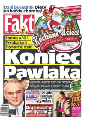 Sensacja w PSL – Pawlak za burtą Piechociński rządzi; skąd Święty Mikołaj ma wiedzieć o jakim prezencie marzą małe dzieci; Kożuchowska ciężko pracuje w galerii handlowej; list gończy za Waśniewską – chcą ją wsadzić na dwa tygodnie; zobacz jak Doda bawi się w najlepsze; Polacy w portfelach mają coraz mniej pieniędzy – a w sklepach płacą coraz więcej.