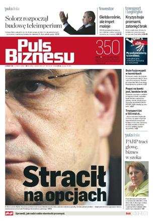 Warszawska Giełda Towarowa – nowe fakty z kariery biznesowej Waldemara Pawlaka, zdaniem inwestorów Cyfrowy Polsat przepłacił za Sferię, Zygmunt Solorz-Żak komentuje transakcję i jej spodziewane następstwa, są kupcy na banki, ale nie ma banków na sprzedaż, ruszył konkurs dla firm na „wyciskanie brukselki”, kłopoty z wykorzystaniem unijnych pieniędzy na transport, Eurotel chce się połączyć z dużym dystrybutorem, WIG wszedł w epokę renesansu, toksyczne opcje wpłyną na wyniki OFE.