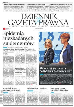 Gazetę wzbogacają praktyczne dodatki dla specjalistów, niedostępne w kioskach: Księgowość i Podatki, Rachunkowość i Audyt, Firma i Prawo, Samorząd i Administracja, Prawnik, Kadry i Płace, Ubezpieczenia i Świadczenia. NOWOŚĆ 2021 r. dodatki Biuro Rachunkowe i Księgowość Budżetowa (dostępne raz w miesiącu). Dodatkowo publikujemy wyjątkowo cenione przez Czytelników specjalne dodatki dotyczące najważniejszych zmian, nowych rozwiązań, na gorąco odpowiadamy na pytania. Piszemy o pracy zdalnej, o tarczach antykryzysowych, o nowych przepisach do walki z epidemią, o sposobach walki z zatorami płatniczymi i nowych obowiązkach pracodawców. Zapewniamy bezpieczeństwo w stosowaniu zmieniającego się prawa.