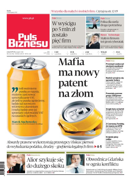 W wyścigu po 5 mln zł zostało pięć firm – o wsparcie BBI Seed Fund walczą Phoenix Technologies, Protech, Fido Voice, Buily i Ministry of Win; wszystko o ubezpieczeniu OC członków zarządu; małym firmom też grozi cyberatak – inwestowanie w oprogramowanie popłaca; mafia ma nowy patent na złom; Alior szykuje się do dużego skoku; obwodnica Gdańska w ogniu konfliktu.