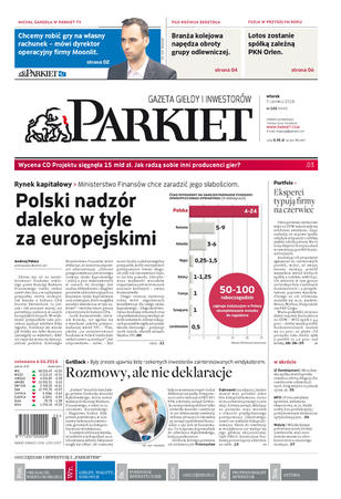 Gazeta Giełdy i Inwestorów Parkiet przyspiesza publikację e-wydania. Od poniedziałku, już od godz. 20.00, można kupić i przeczytać e-wydanie Parkietu, które w wersji papierowej ukaże się dopiero następnego dnia. Parkiet jest więc najświeższą gazetą finansową w Polsce.