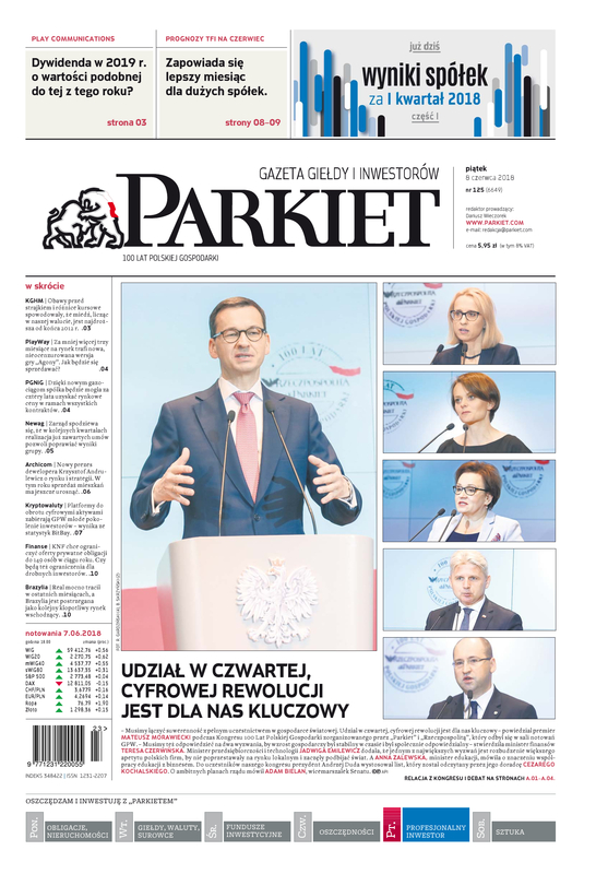 Największy w Polsce newsroom gospodarczy zbiera, analizuje i zgłębia dla Państwa najważniejsze informacje ze świata finansów. Codzienne wydanie „Parkietu”, sześć dni w tygodniu, to kilkadziesiąt artykułów o emitentach, instytucjach finansowych, gospodarce. To również opinie, felietony i wywiady z najważniejszymi ludźmi krajowej i globalnej finansjery.