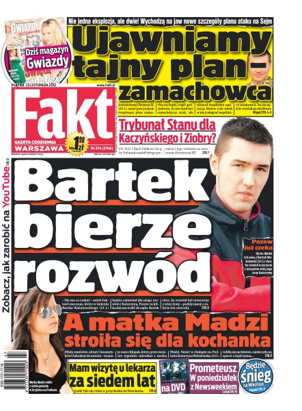 Tajny plan zamachowca – nie jedna eksplozja, ale dwie, wychodzą na jaw nowe szczegóły planu ataku na Sejm; Trybunał Stanu dla Kaczyńskiego i Ziobry; matka Madzi stroiła się dla kochanka; wizyta u lekarza za siedem lat; jak zarobić na YouTube; na Mikołaja spadnie w końcu śnieg.