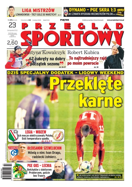 Robert Lewandowski sezon zaczął niemrawo, ale w porę się przebudził, teraz nawet Hiszpanie piszą o nim „napastnik kompletny”; w tym roku znowu aż dwa angielskie zespoły mogą odpaść już w fazie grupowej Ligi Mistrzów; Justyna Kowalczyk szykuje się w Gällivare na walkę z rywalkami, trasą i – przede wszystkim – własnymi piszczelami; medal olimpijski to niejedyne marzenie Sylwii Bogackiej, które spełniło się w 2012 roku; Gortat dostał, czego chciał.