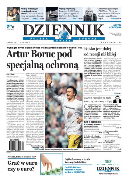 PZPN w obawie o bezpieczeństwo polskich reprezentantów wynajął prywatną firmę ochroniarską; ludowcy są oburzeni słowami Donalda Tuska o odmiennych standardach stosowanych przez PSL w życiu publicznym; coraz więcej polskich parlamentarzystów chce dostać się do Parlamentu Europejskiego; prezydent i premier uzgodnili, że do Brukseli polecą jednym samolotem; Jacek Kurski chce zakazać politykom anonimowych wypowiedzi dla mediów; mimo kryzysu finansowego kredyty hipoteczne są wciąż łatwo dostępne; Europa szykuje się do pierwszej poważnej konfrontacji politycznej z Barackiem Obamą.