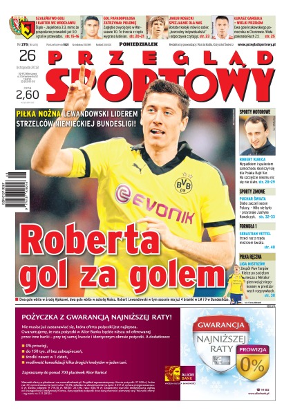 Robert Lewandowski w tym sezonie ma już 4 bramki w LM i 9 w Bundeslidze; wypadkiem i spaleniem samochodu skończył się dla Roberta Kubicy Rajd Var; klapa na inaugurację Pucharu Świata – Justyna Kowalczyk była dopiero 27.; Sebastian Vettel trzeci raz z rzędu mistrzem świata; zespół Vive Targów Kielce po zaciętym meczu z Metalurgiem wciąż niepokonany w prestiżowych rozgrywkach Ligi Mistrzów.