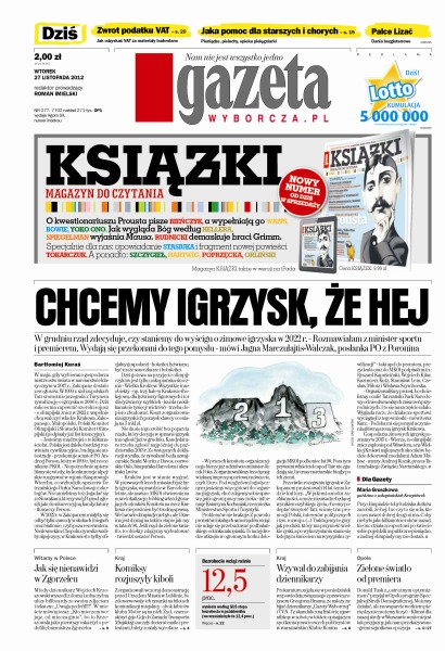 W grudniu rząd zdecyduje, czy staniemy do wyścigu o zimowe igrzyska w2022r.; zwrot podatku – jak odzyskać VAT za materiały budowlane; jaka pomoc dla starszych i chorych – pieniądze, pieluchy, opieka pielęgniarki; jak się nienawidzi w Zgorzelcu; komiksy rozjuszyły kiboli; Donald Tusk z „ostrożnym optymizmem” przyjął w Opolu program Specjalnej Strefy Demograficznej.