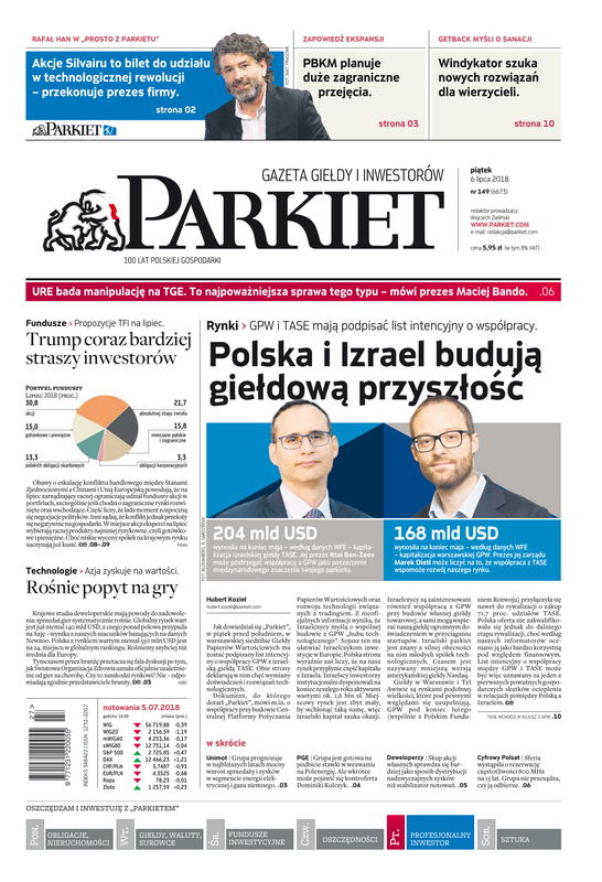 Największy w Polsce newsroom gospodarczy zbiera, analizuje i zgłębia dla Państwa najważniejsze informacje ze świata finansów. Codzienne wydanie „Parkietu”, sześć dni w tygodniu, to kilkadziesiąt artykułów o emitentach, instytucjach finansowych, gospodarce. To również opinie, felietony i wywiady z najważniejszymi ludźmi krajowej i globalnej finansjery.
