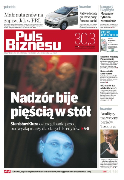 Komisja Nadzoru Finansowego nie zgadza się na podwyższanie marży i dodatkowe ubezpieczenia kredytów hipotecznych – ale Polbank nie podlega pod KNF, PKM Duda broni się przed upadłością, Amrest sprzedał swój pakiet Sfinksa, BNP Paribas wieszczy silny spadek PKB i euro po 5,40 zł, mielecka strefa ma szansę na sześć inwestycji, ceny spółek podawane w rekomendacjach zbliżają się do rynkowych, na GPW szaleństwo zakupów przy rosnących obrotach.