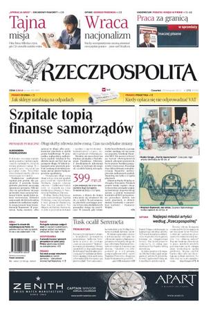 Szpitale topią finanse samorządów – długi służby zdrowia znów rosną, czas na radykalne zmiany; jak sklepy zarabiają na odpadach; kiedy opłaca się nie odprowadzać VAT; ruchy secesjonistyczne zaczną zmieniać europejskie granice – pisze szef Stratforu; Portugalia wykazuje nadgorliwość w cięciach budżetowych; Tusk ocalił Seremeta; film Bena Afflecka o tym, jak CIA zwiodło irański reżim.