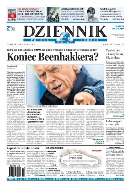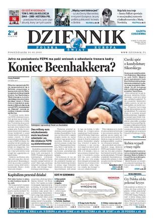Po fatalnym meczu w Belfaście jutro na posiedzeniu PZPN ma paść wniosek o odwołanie trenera kadry; polscy chuligani wywołali awanturę w stolicy Irlandii Północnej; szef MSZ nie ma szans na przywództwo w NATO, ale Polska nie zamierza rezygnować; projekt przygotowany przez koalicję i SLD wzbudził sprzeciw episkopatu; Santander kończy z kredytami hipotecznymi, klienci dostali pięć dni na wszystkie formalności; rozmowa z Leszkiem Millerem; Chińczycy śledzili biura ludzi związanych z Dalajlamą, ambasady i ministerstwa obcych państw; głupota Vettela pozbawiła Kubicę drugiego miejsca w GP Australii. Dodatki: The Wall Street Journal, Warszawa, Praca.