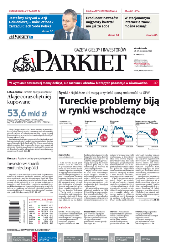 Największy w Polsce newsroom gospodarczy zbiera, analizuje i zgłębia dla Państwa najważniejsze informacje ze świata finansów. Codzienne wydanie „Parkietu”, sześć dni w tygodniu, to kilkadziesiąt artykułów o emitentach, instytucjach finansowych, gospodarce. To również opinie, felietony i wywiady z najważniejszymi ludźmi krajowej i globalnej finansjery.