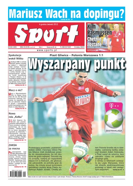Dla Arkadiusza Milika runda ligowa dobiegła już końca, co nie znaczy, że wokół jego osoby jest cicho i spokojnie; nawet idąc na kolanach, musimy doczłapać do końca sezonu – stwierdził po czwartej z rzędu porażce w lidze trener Jacek Zieliński; Borussia nie musi się już wysilać, a Manchester City średnio zapatruje się na grę w Lidze Europy, zatem dziś wielkich emocji w Dortmundzie nie będzie; koszykarki CCC Polkowice przegrywają u siebie z Artego Bydgoszcz, Wisła Can-Pack Kraków została rozbita w Pruszkowie; lider PlusLigi, ZAKSA Kędzierzyn-Koźle, miał być kolejną drużyną, której Politechnika chciała urwać punkty, ale nic z tego nie wyszło; niemiecki „Bild” na swojej stronie internetowej podał, iż w organizmie Mariusza Wacha po przegranej walce z mistrzem świata czterech federacji, Władimirem Kliczką, wykryto doping.