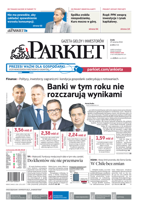 Największy w Polsce newsroom gospodarczy zbiera, analizuje i zgłębia dla Państwa najważniejsze informacje ze świata finansów. Codzienne wydanie „Parkietu”, sześć dni w tygodniu, to kilkadziesiąt artykułów o emitentach, instytucjach finansowych, gospodarce. To również opinie, felietony i wywiady z najważniejszymi ludźmi krajowej i globalnej finansjery.