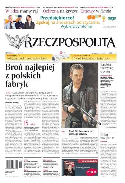 Resort obrony szuka sposobu na ograniczenie dostępu zagranicznych koncernów do 100 mld zł, które nasz kraj zamierza wydać na nową broń w najbliższej dekadzie; rośnie lęk przed utratą pracy; SLD i Ruch Palikota wracają do antyklerykalnych akcji; Polska stara się o powrót do natowskiego programu AGS obserwacji obiektów naziemnych z powietrza; zmieniając często zdanie, kanclerz Merkel przekształca grecką tragedię w farsę; do zagadkowej walki wokół upamiętnienia mordów NKWD na oficerach Wojska Polskiego doszło w Kuropatach; tysiące automatycznych robotów najnowszej generacji tworzą w czasie rzeczywistym obraz życia w oceanach na całym globie; największy polski koncern paliwowy rozważa zmianę formuły dostaw surowca do swojej rafinerii.