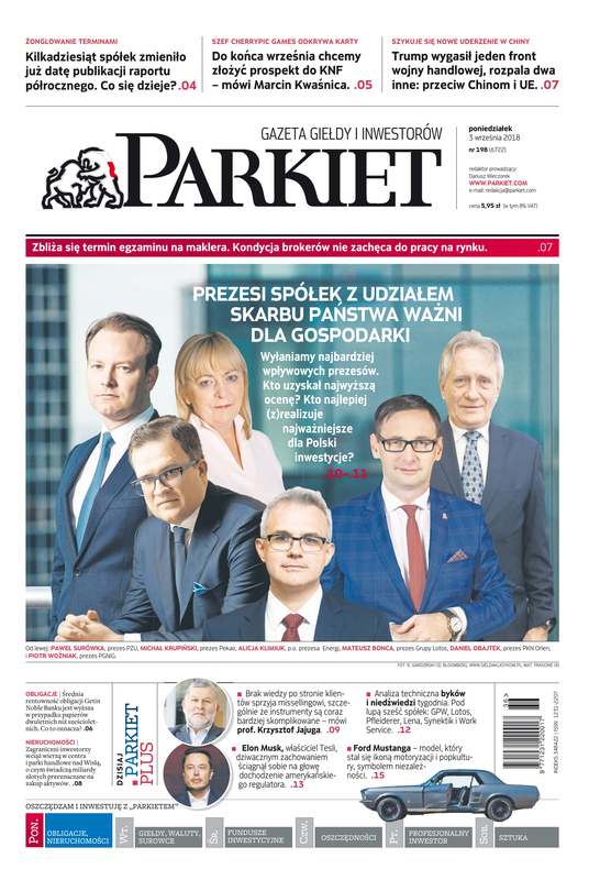 Największy w Polsce newsroom gospodarczy zbiera, analizuje i zgłębia dla Państwa najważniejsze informacje ze świata finansów. Codzienne wydanie „Parkietu”, sześć dni w tygodniu, to kilkadziesiąt artykułów o emitentach, instytucjach finansowych, gospodarce. To również opinie, felietony i wywiady z najważniejszymi ludźmi krajowej i globalnej finansjery.