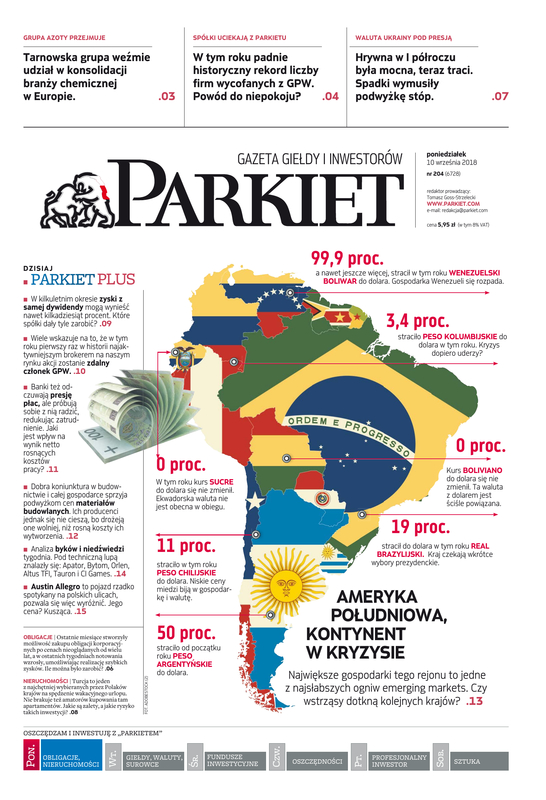 Największy w Polsce newsroom gospodarczy zbiera, analizuje i zgłębia dla Państwa najważniejsze informacje ze świata finansów. Codzienne wydanie „Parkietu”, sześć dni w tygodniu, to kilkadziesiąt artykułów o emitentach, instytucjach finansowych, gospodarce. To również opinie, felietony i wywiady z najważniejszymi ludźmi krajowej i globalnej finansjery.