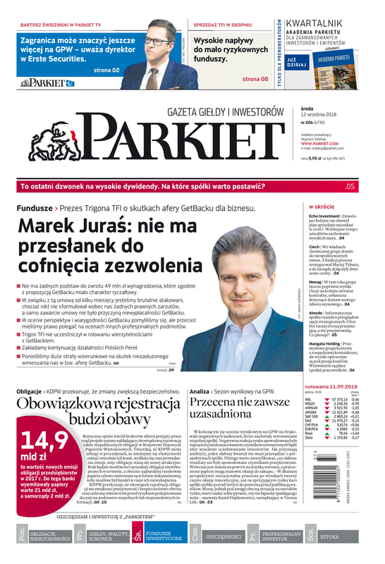 Największy w Polsce newsroom gospodarczy zbiera, analizuje i zgłębia dla Państwa najważniejsze informacje ze świata finansów. Codzienne wydanie „Parkietu”, sześć dni w tygodniu, to kilkadziesiąt artykułów o emitentach, instytucjach finansowych, gospodarce. To również opinie, felietony i wywiady z najważniejszymi ludźmi krajowej i globalnej finansjery.