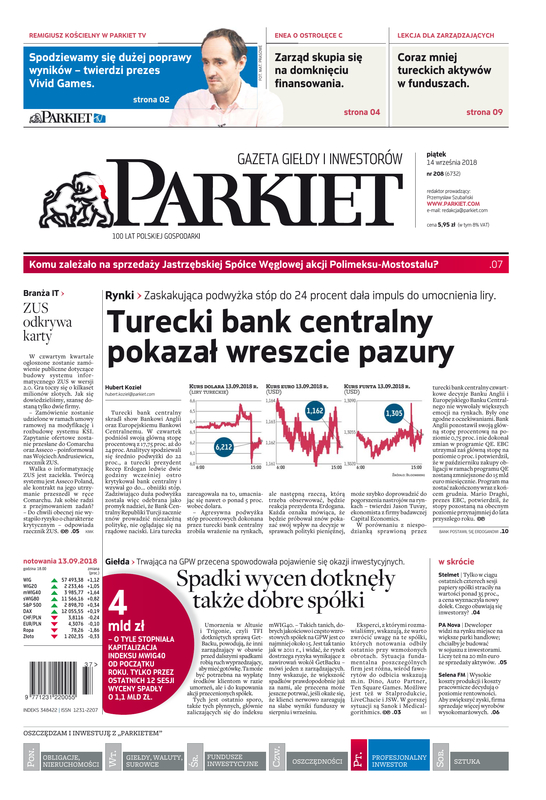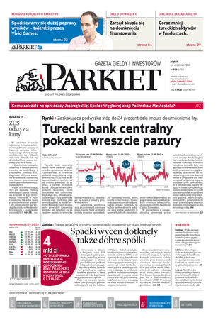 Największy w Polsce newsroom gospodarczy zbiera, analizuje i zgłębia dla Państwa najważniejsze informacje ze świata finansów. Codzienne wydanie „Parkietu”, sześć dni w tygodniu, to kilkadziesiąt artykułów o emitentach, instytucjach finansowych, gospodarce. To również opinie, felietony i wywiady z najważniejszymi ludźmi krajowej i globalnej finansjery.