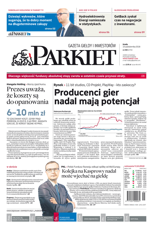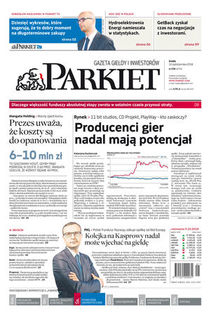 Największy w Polsce newsroom gospodarczy zbiera, analizuje i zgłębia dla Państwa najważniejsze informacje ze świata finansów. Codzienne wydanie „Parkietu”, sześć dni w tygodniu, to kilkadziesiąt artykułów o emitentach, instytucjach finansowych, gospodarce. To również opinie, felietony i wywiady z najważniejszymi ludźmi krajowej i globalnej finansjery.