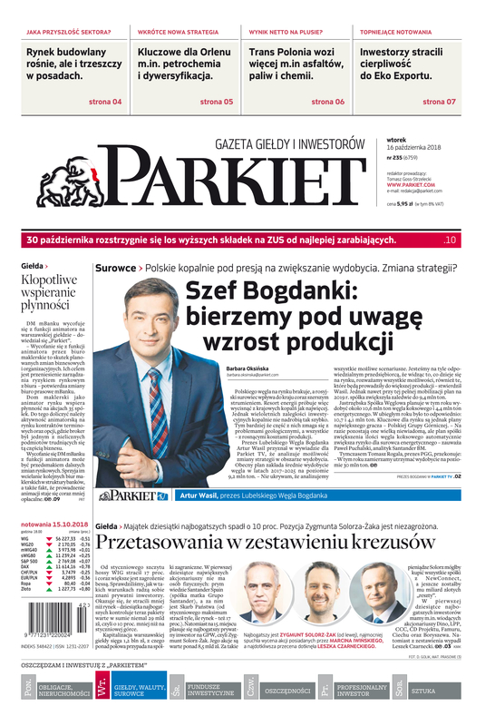 Największy w Polsce newsroom gospodarczy zbiera, analizuje i zgłębia dla Państwa najważniejsze informacje ze świata finansów. Codzienne wydanie „Parkietu”, sześć dni w tygodniu, to kilkadziesiąt artykułów o emitentach, instytucjach finansowych, gospodarce. To również opinie, felietony i wywiady z najważniejszymi ludźmi krajowej i globalnej finansjery.