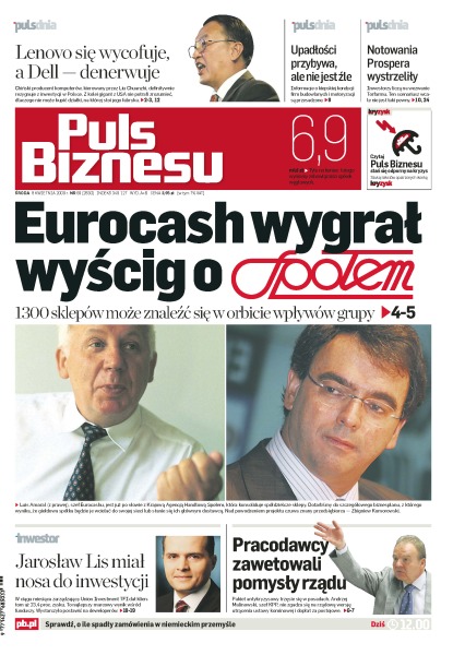 Lenovo wycofuje się z inwestycji w Legnickim Polu i w Nowej Soli, Dell ma już serdecznie dosyć inwestycji w Polsce, Eurocash do 2012 roku chce zaopatrywać 1100 sklepów Społem, pracodawcy sprzeciwią się rządowym pomysłom z pakietu antykryzysowego, duże szanse przed branżami motoryzacyjną i budowlaną, akcje Prospera poszły w górę o 36% – ale Tofarm jeszcze nie ogłosił wezwania, w marcu fundusze na ogół zarabiały – najlepszy wynik to 23,4%, najgorszy zaś to -19,6%.
