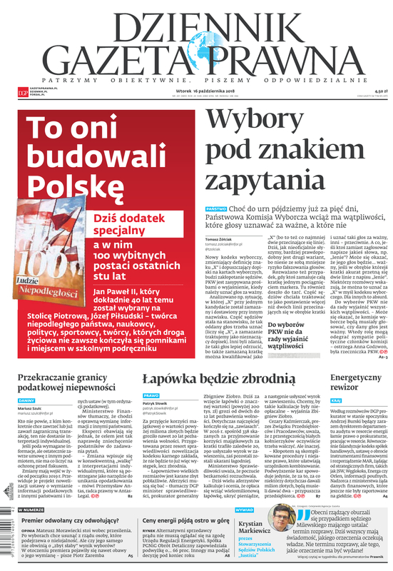 Gazetę wzbogacają praktyczne dodatki dla specjalistów, niedostępne w kioskach: Księgowość i Podatki, Rachunkowość i Audyt, Firma i Prawo, Samorząd i Administracja, Prawnik, Kadry i Płace, Ubezpieczenia i Świadczenia. NOWOŚĆ 2021 r. dodatki Biuro Rachunkowe i Księgowość Budżetowa (dostępne raz w miesiącu). Dodatkowo publikujemy wyjątkowo cenione przez Czytelników specjalne dodatki dotyczące najważniejszych zmian, nowych rozwiązań, na gorąco odpowiadamy na pytania. Piszemy o pracy zdalnej, o tarczach antykryzysowych, o nowych przepisach do walki z epidemią, o sposobach walki z zatorami płatniczymi i nowych obowiązkach pracodawców. Zapewniamy bezpieczeństwo w stosowaniu zmieniającego się prawa.
