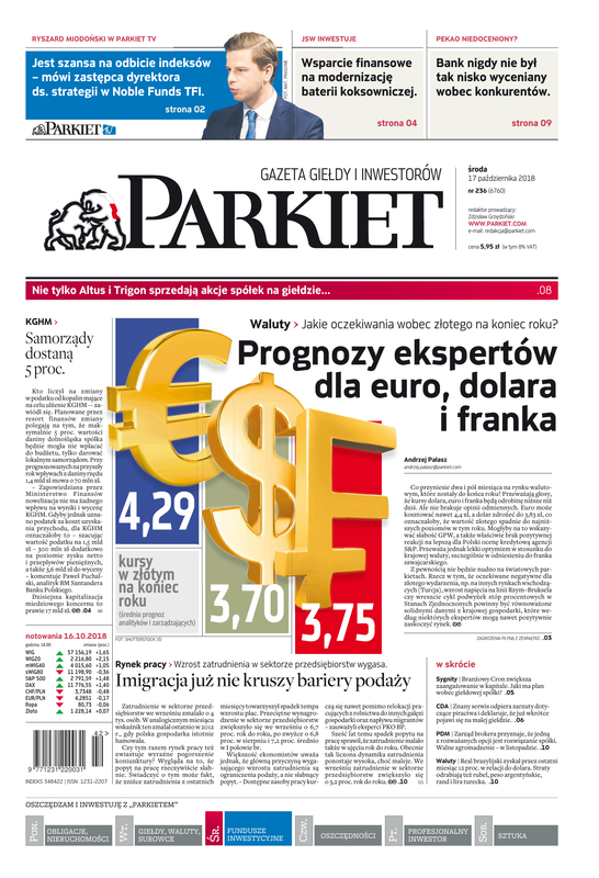 Największy w Polsce newsroom gospodarczy zbiera, analizuje i zgłębia dla Państwa najważniejsze informacje ze świata finansów. Codzienne wydanie „Parkietu”, sześć dni w tygodniu, to kilkadziesiąt artykułów o emitentach, instytucjach finansowych, gospodarce. To również opinie, felietony i wywiady z najważniejszymi ludźmi krajowej i globalnej finansjery.