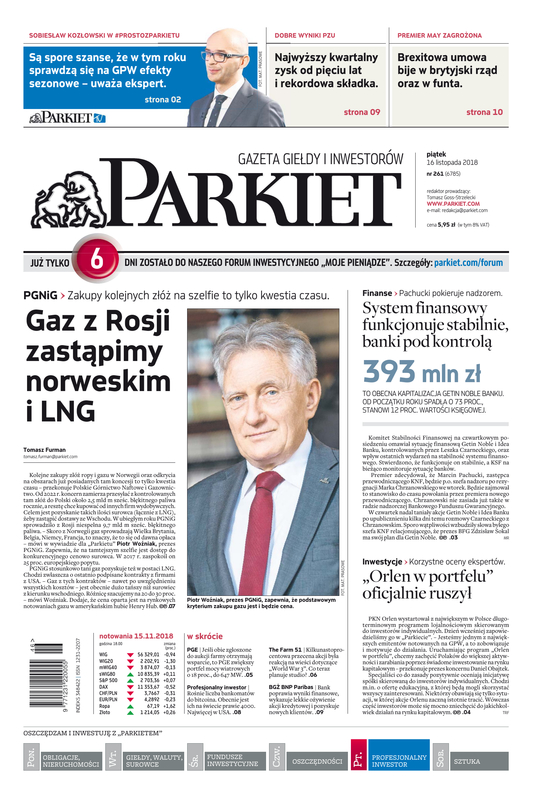 Największy w Polsce newsroom gospodarczy zbiera, analizuje i zgłębia dla Państwa najważniejsze informacje ze świata finansów. Codzienne wydanie „Parkietu”, sześć dni w tygodniu, to kilkadziesiąt artykułów o emitentach, instytucjach finansowych, gospodarce. To również opinie, felietony i wywiady z najważniejszymi ludźmi krajowej i globalnej finansjery.