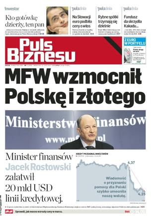 20 mld USD linii kredytowej z MFW zwiększy rezerwy NBP o jedną trzecią – złotówka zyskała 12 groszy, wprowadzenie euro podniosło ceny na Słowacji o ułamek punktu procentowego, rybne spółki walczą o rentowność, ceny żywca wieprzowego są najdroższe od czterech lat, ARX kupił Kakadu, Merlin.pl – historia ciągłego rozwoju i strat, ranking blue chipów na podstawie relacji zadłużenia do zapasów gotówki, giełdowe misie odrabiają straty.