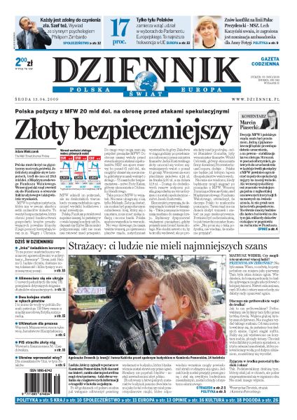 Złotówka będzie bezpieczniejsza - Polska pożyczy od MFW 20 mld dolarów na obronę przed atakami spekulacyjnymi; rząd udzieli pomocy finansowej ofiarom pożaru w Kamieniu Pomorskim; pomimo ostrej krytyki Piotr Farfał nie został odwołany ze stanowiska prezesa TVP; w całej UE zostaną ujednolicone przepisy dotyczące ścigania dłużników alimentacyjnych; wybory do Parlamentu Europejskiego nie cieszą się dużym zainteresowaniem wyborców; Barack Obama radykalnie zmienił politykę USA wobec Iranu.