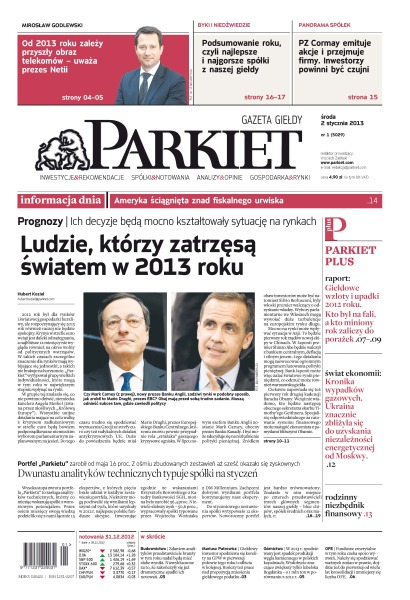 Największy w Polsce newsroom gospodarczy zbiera, analizuje i zgłębia dla Państwa najważniejsze informacje ze świata finansów. Codzienne wydanie „Parkietu”, sześć dni w tygodniu, to kilkadziesiąt artykułów o emitentach, instytucjach finansowych, gospodarce. To również opinie, felietony i wywiady z najważniejszymi ludźmi krajowej i globalnej finansjery.