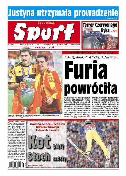 reprezentacji, wśród nich Waldemar Fornalik; Justynie Kowalczyk nie udało się awansować do finału sprintu w Val Muestair, ale i tak powiększyła przewagę nad Therese Johaug; Kamil Stoch i Maciej Kot minimalnie przegrali walkę o podium w noworocznym konkursie w Garmisch-Partenkirchen; siostry Radwańskie ze zmiennym szczęściem zainaugurowały nowy rok; gdyby nie Adrian Newey, bolidy Red Bull Racing nie byłyby tak fantastyczne.