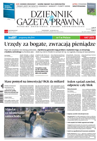 Piąty rok urzędnicy nie dostają podwyżek, a dyrektorzy generalni mają problem z wydaniem tego, co otrzymują z budżetu centralnego na fundusz płac – około 6,9 mld zł; masz pomysł na inwestycję – BGK da miliard; jeden sąsiad zawini, odpowie cały blok; dajemy zarobić obcokrajowcom; Unia wpuści do Polski zagraniczne koleje; zyski na upadłościach kosztem syndyków.